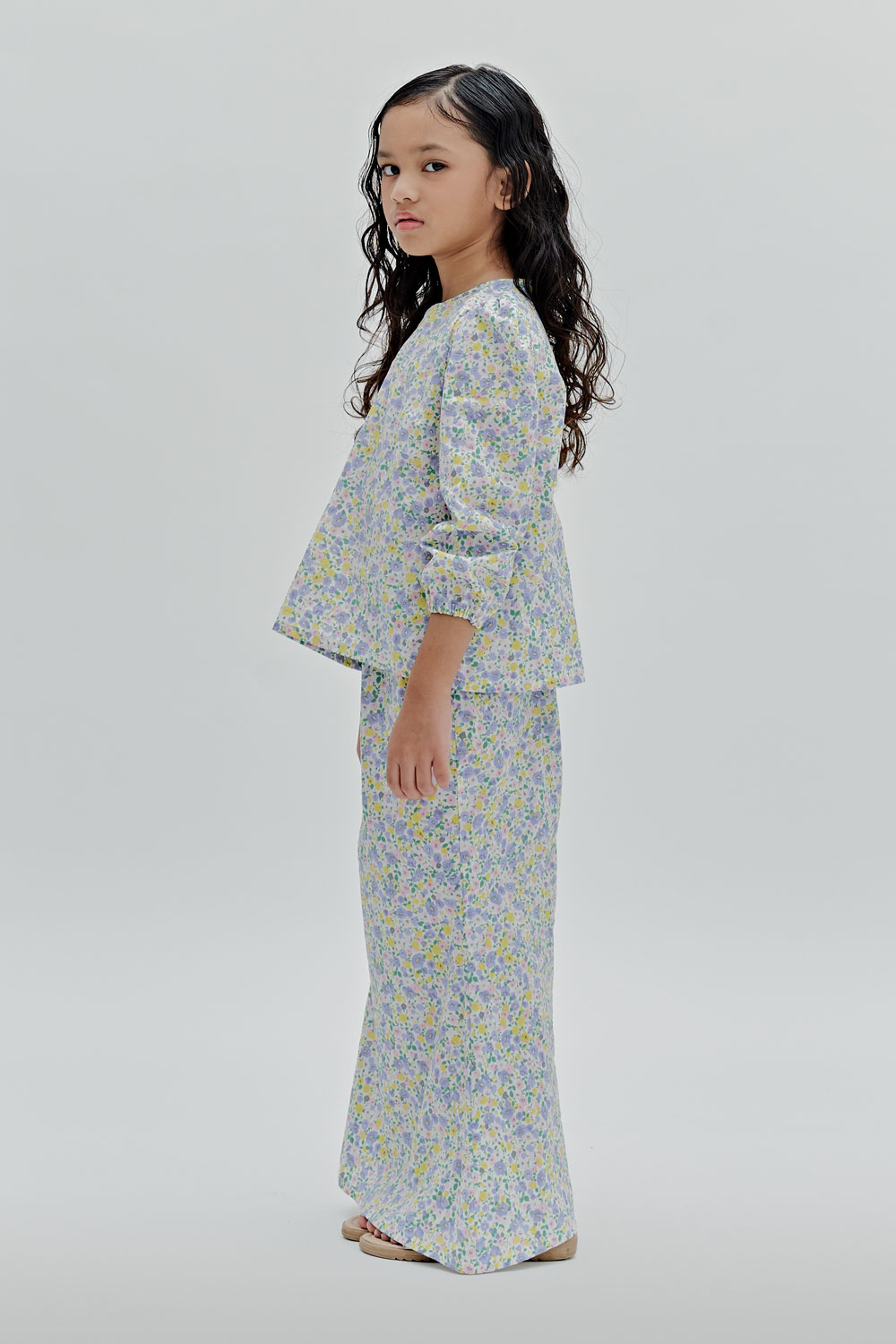 Tamitha Kids is a abstract floral kurung kedah with flare 3/4 sleeves and mermaid skirt.