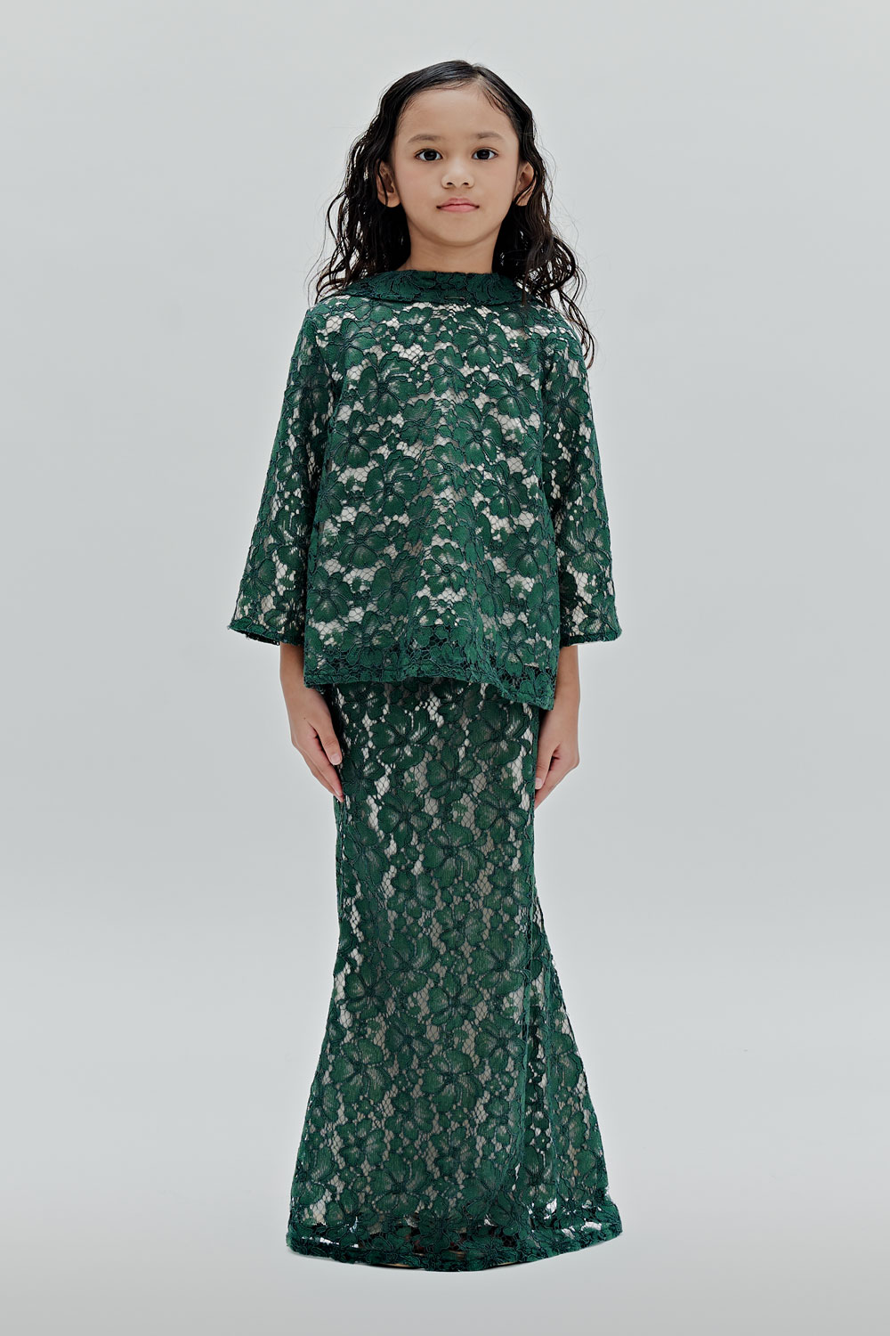 Clary Kids is a fully lined lace modern kurung with mermaid skirt