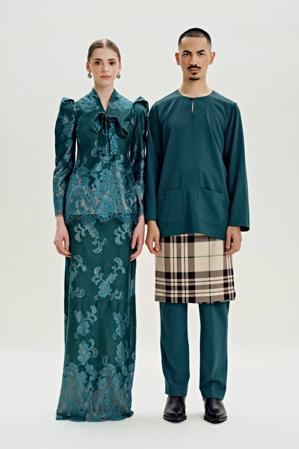AMELIA LACE MINI KURUNG – TEAL GREEN