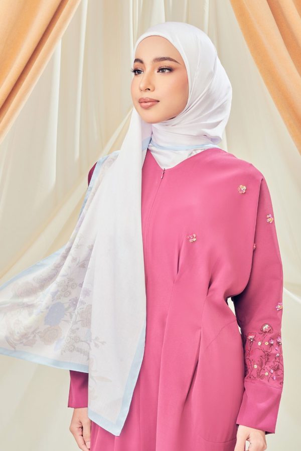 Introducing our exquisite Eid collection, delicately crafted with satin silk material. Embrace the elegance of soft pastel hues intertwined with intricate floral detailing, adding a touch of grace and charm to your ensemble. Elevate your style this Eid with our luxurious floral motif scarf.