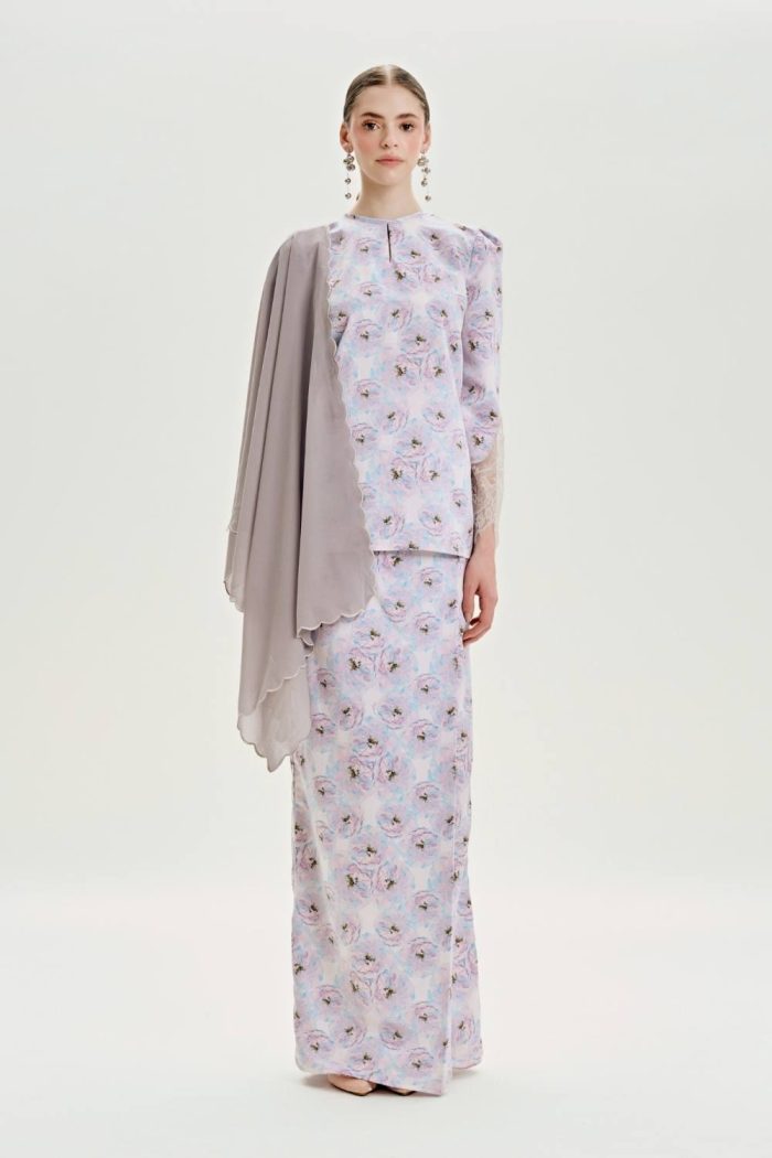 Brianna is a lilac and white satin kurung kedah with lacey sleeves. Brianna also comes in kid’s size.