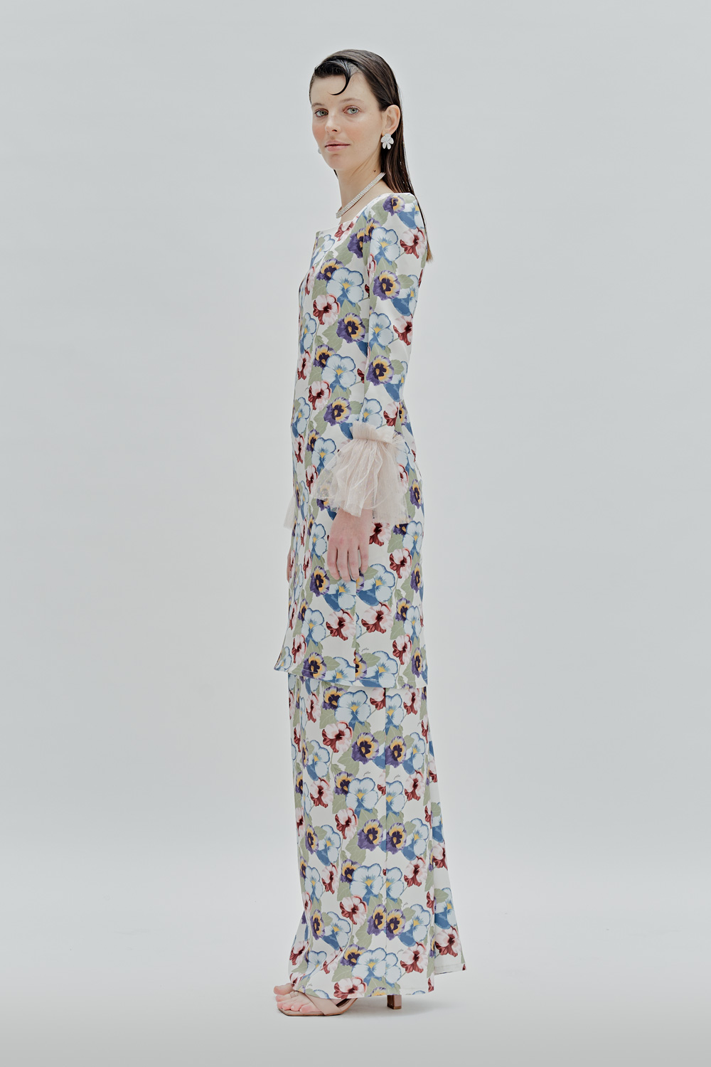 Stella is one of our signature modern kurung pahang with nude, blue and purple poppy prints and tulle detailing. Stella also available in kid’s size.